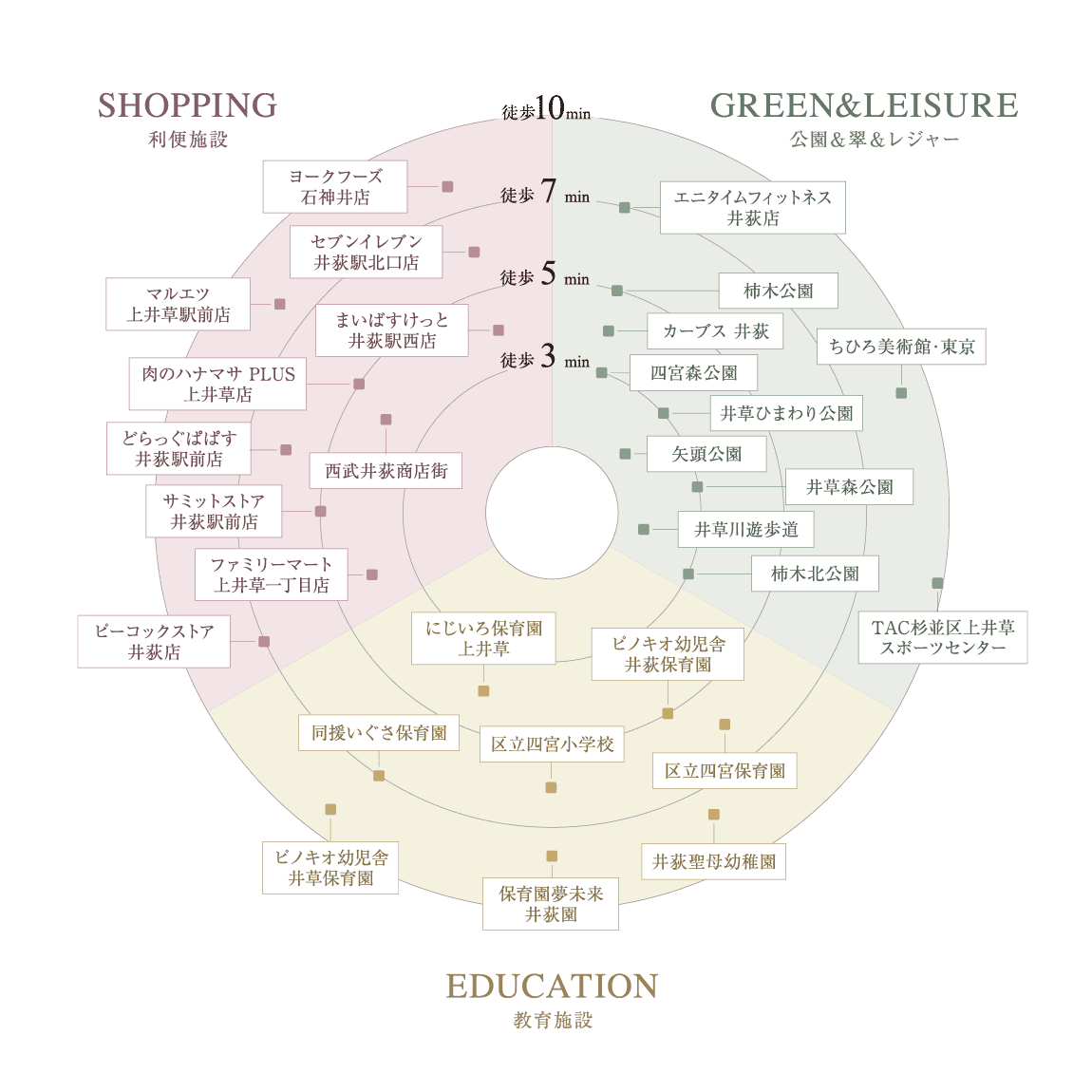徒歩10分圏に生活施設、