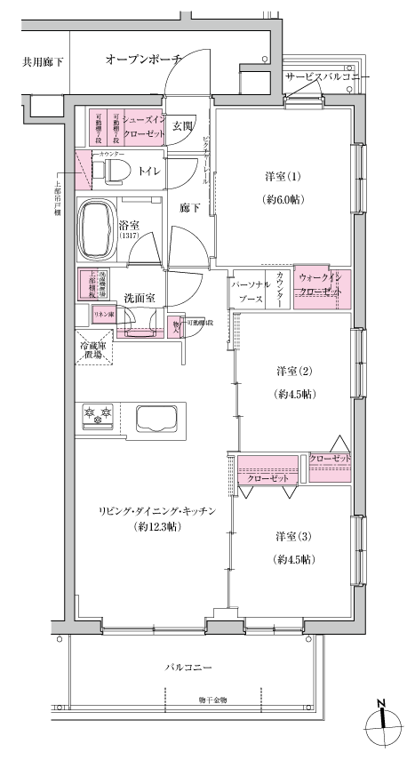 ※WIC:ウォークインクロゼット、SIC:シューズインクローゼット、P:パーソナルブース